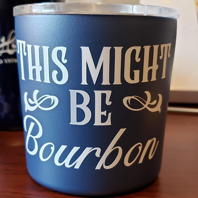 Let them wonder whats in your tumbler with this “This Might be Bourbon” decal.